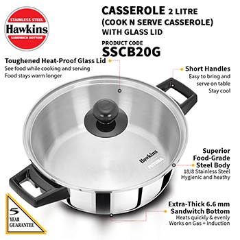 Induction Cook And Serve Casserole with Glass Lid
