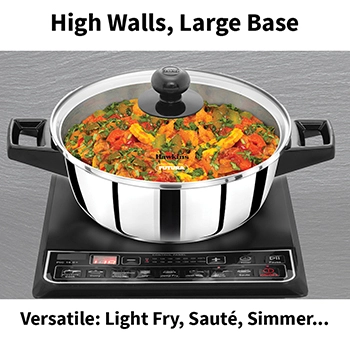 High walls, large base – versatile: light-fry, sauté, simmer…